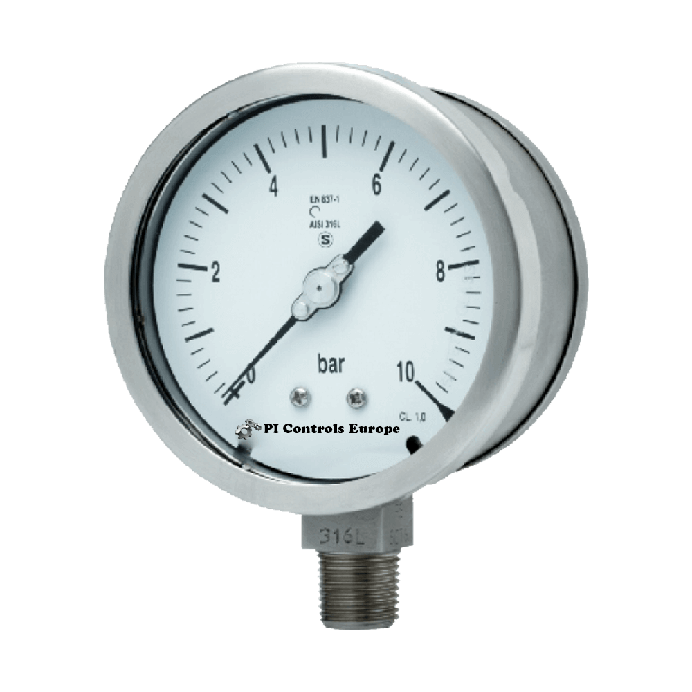 All stainless steel pressure gauge, DIN style case