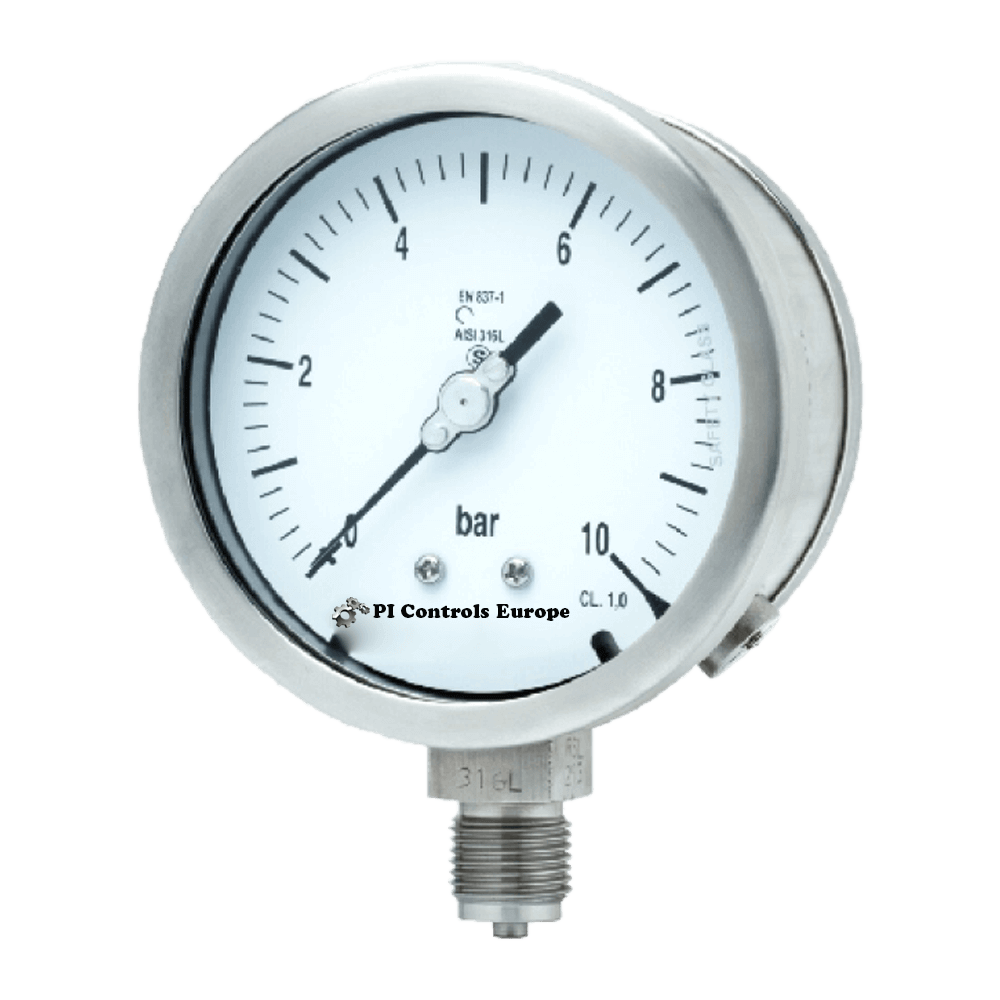 All SS solid front pressure gauge, < 100 mm diameter