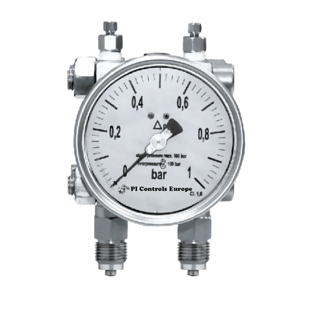 Differential pressure gauge, piston operated