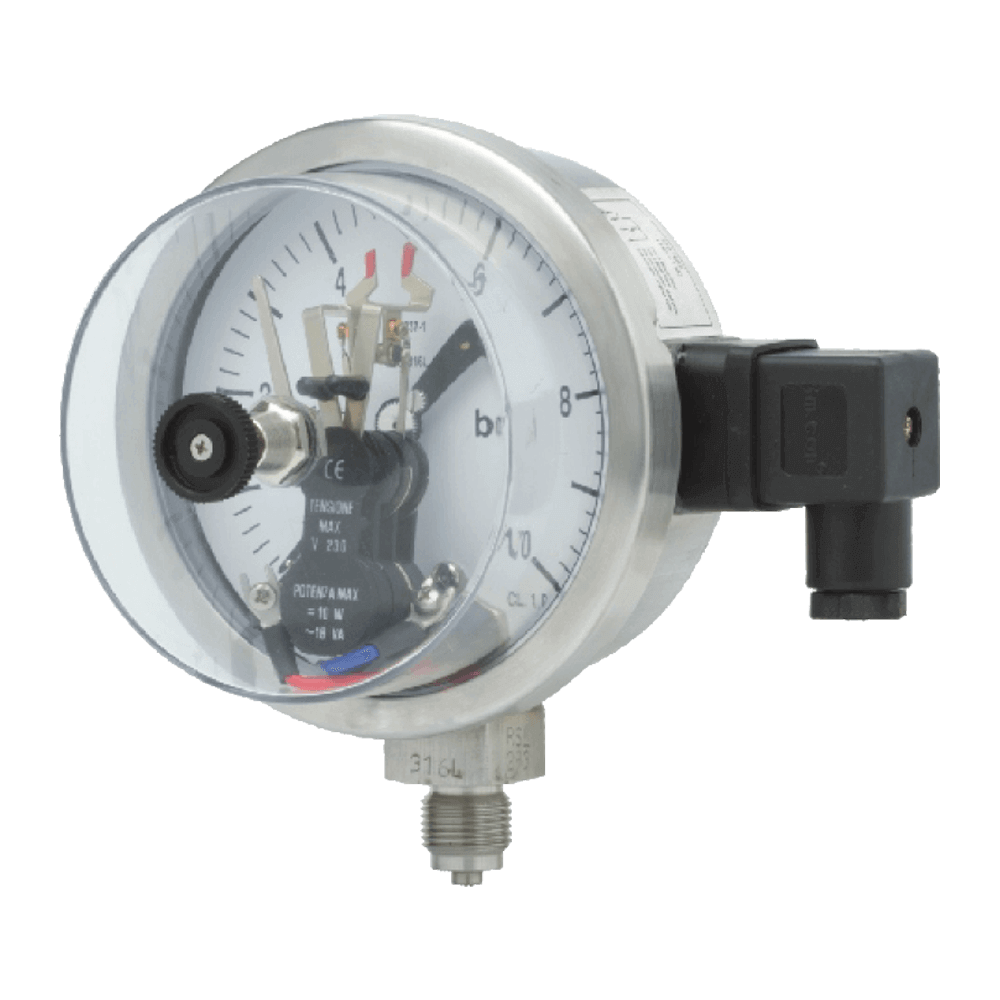 All SS pressure gauge, electric contact type, dome style