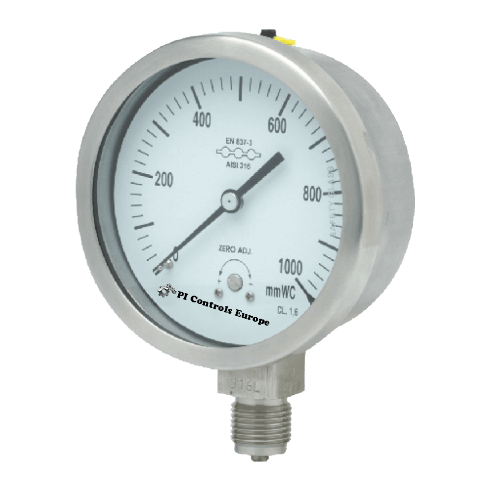 All SS pressure gauge with external zero adjustment