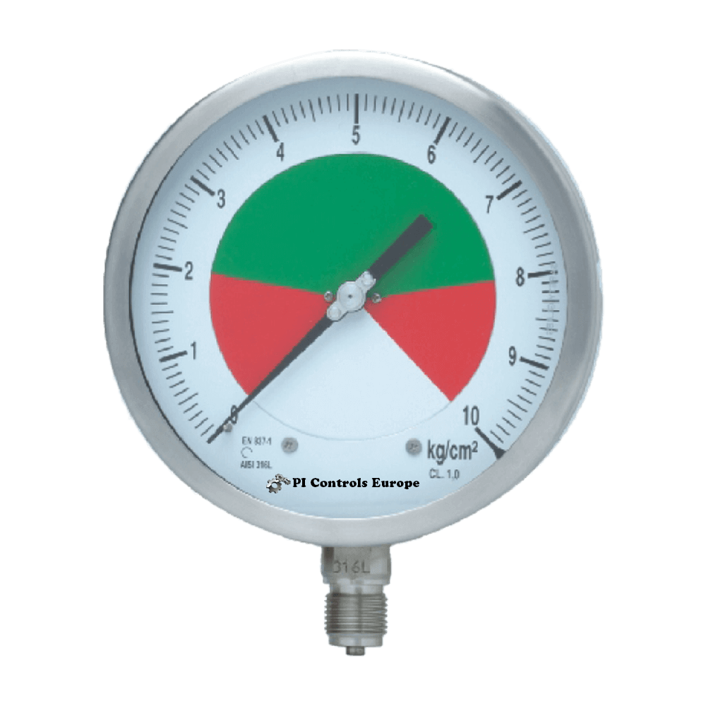 All SS solid front pressure gauge, >100 mm diameter